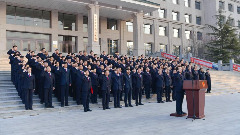 兰州市检察院举行宪法宣誓仪式,兰州市检察院党组书记、代理检察长李郁军带领全体干警宣誓,并要求牢记誓言,自觉尊法、学法、守法、用法,扎实履职尽责,争做无愧于党、无愧于人民、无愧于宪法和法律的人民检察官。