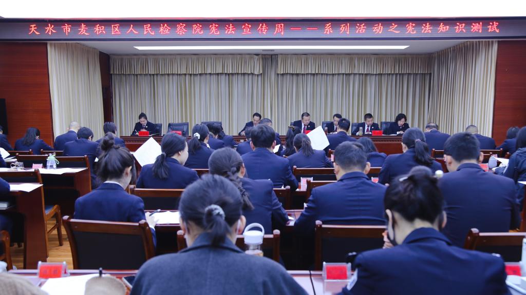 天水市麦积区检察院组织干警开展宪法知识测试,在检验干警学习宪法知识成效的同时,让大家感受到宪法尊严和宪法权威,增强法律意识和法治观念。