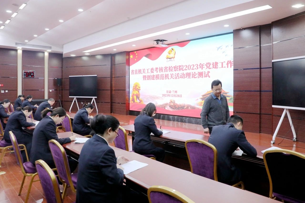 考核组采取观看党建工作专题宣传片、查看支部党建活动阵地、查阅机关党建资料、与部分党支部书记及党员代表谈心谈话、党建理论知识测试等方式,重点从政治建设、思想建设、组织建设、党建引领、正风肃纪等五方面内容,对省检察院机关2023年党建工作情况、模范机关创建和标兵处室创立情况进行全面考核,并征求了对机关党建工作的意见建议。