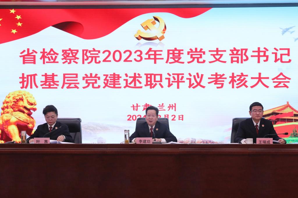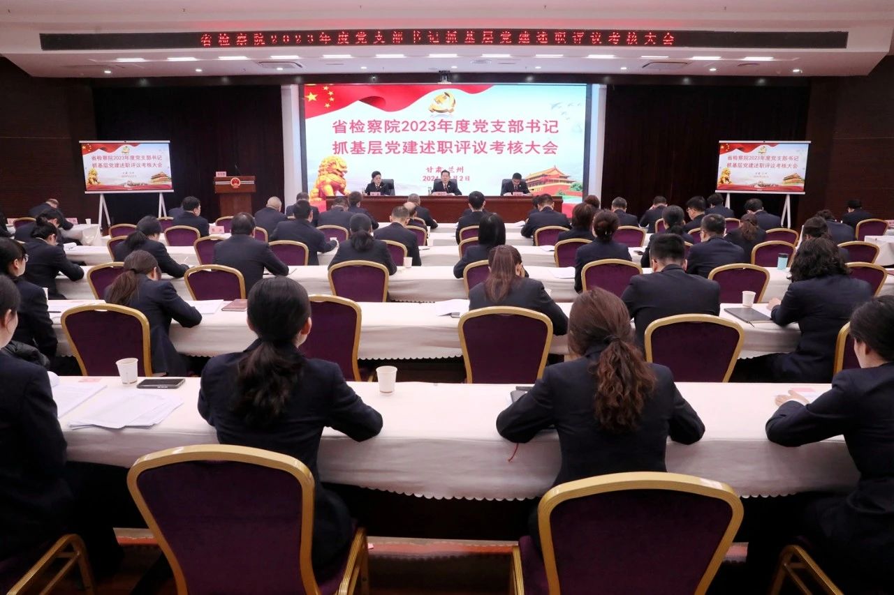召开2023年度省检察院党支部书记抓基层党建工作述职评议考核大会。省检察院党组成员、政治部主任、机关党委书记李建功出席会议并讲话,对述职情况进行点评,就抓好2024年机关党建工作提出要求。