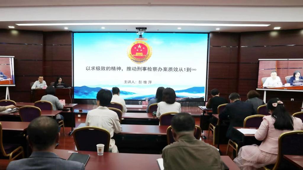 微课堂上,兰州市城关区检察院第三检察部主任彭维萍以《以求极致的精神,推动刑事检察办案质效从1到∞》为题,结合工作实际和从检经历,从以求极致的精神推动办案质效从1到∞、雏鹰计划之优秀公诉人梯队培养、精耕细作打造精品案件、升华案件效果为调研成果三个方面,就刑事检察工作如何“求极致”分享履职故事、办案感悟和心得体会。