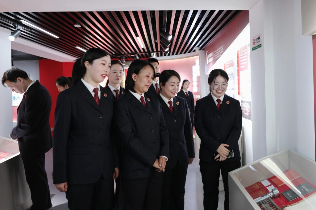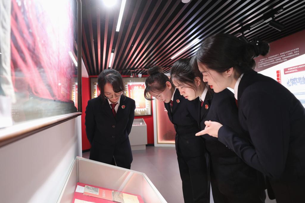 检察干警们跟随着讲解员,在一张张鲜活生动的照片前驻足观看,在一件件珍贵厚重的实物前凝目良久,在一段段真切动人的光影声像里追忆历史,在一项项如临其境的互动体验中憧憬未来,边走边看、边思边悟,自发热议、由衷感慨。