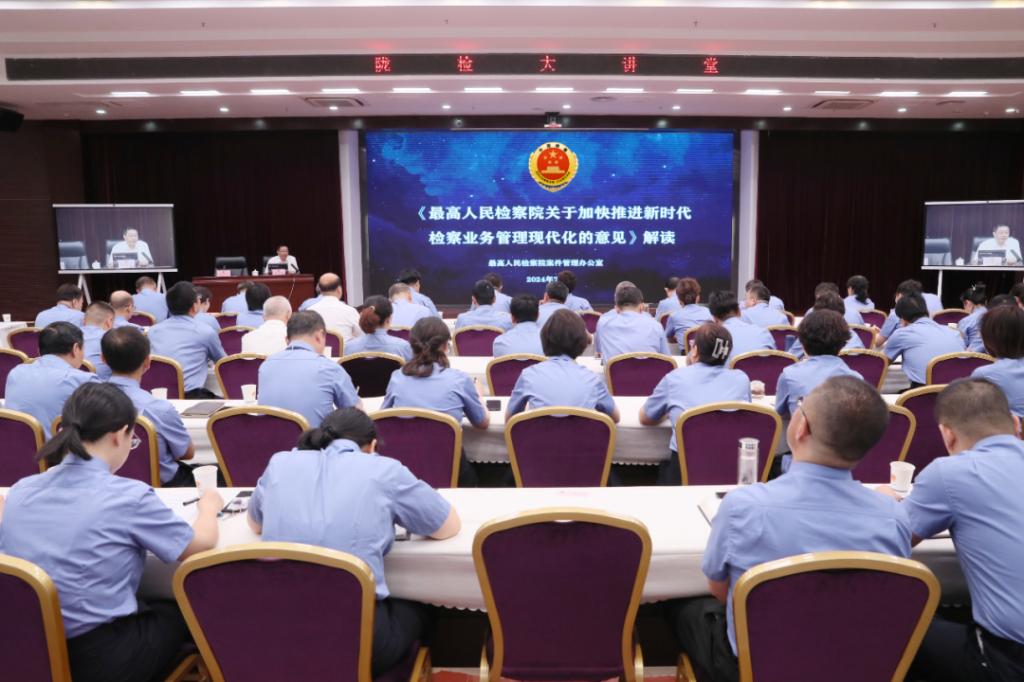 “《意见》首次明确坚持业务管理组织体系,贯穿‘全面准确落实司法责任制’要求,强化‘大管理’格局,与检察工作现代化相契合……”讲座中,申国军系统解读了《意见》的起草背景、起草思路以及起草过程,深入阐述了业务管理需要把握的十二个方面重点内容,为全省检察机关加快推进检察业务管理现代化明确了重点、提供了方法。