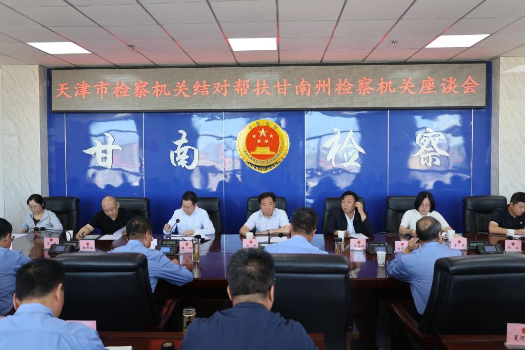 近日,天津市检察院党组副书记、副检察长侯智带队来甘调研检察机关对口援助工作,在省检察院、甘南州检察院召开座谈会,并到对口支援的甘南州两级检察机关、天祝县检察院实地走访调研。省检察院党组副书记、副检察长丁霞敏出席座谈会并讲话,省检察院党组成员、政治部主任李建功,天津市援助甘肃指挥部有关领导参加座谈并陪同调研。
