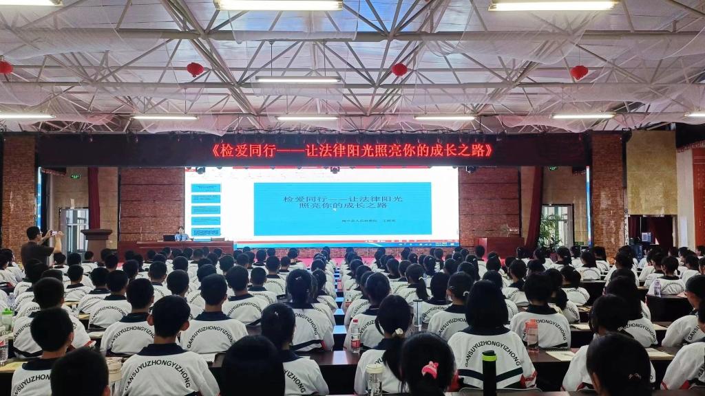 榆中县检察院“榆光同行”未检团队到县第一中学,以“检爱同行——让法律阳光照亮你的成长之路”为主题,为700余名新生送上“开学第一课”。检察官结合工作实际,以不做电诈工具人、珍爱生命 远离毒品、拒绝校园欺凌等三方面内容,以案释法,劝诫同学们不仅要关注学习,还要重视增强法律意识,学会预防不法侵害,做遵纪守法的新时代青年。