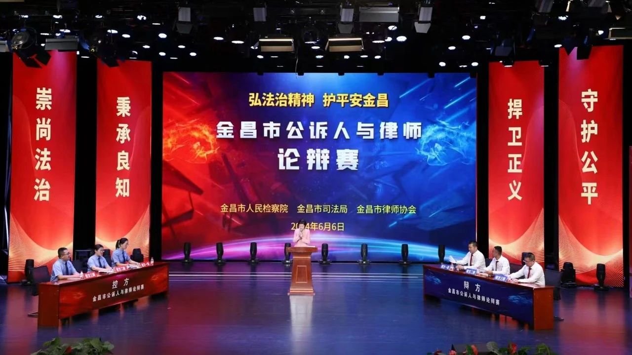 6月6日,金昌市检察院、金昌市司法局、金昌市律师协会联合举办公诉人与律师论辩赛。经过选拔,金昌市检察机关和律师行业各9名选手参赛。论辩双方紧扣辩题,从法、理、情多维度进行释法明理,在论辩中双方选手逻辑缜密、沉着应对、冷静分析、激烈交锋,不断将比赛推向高潮。