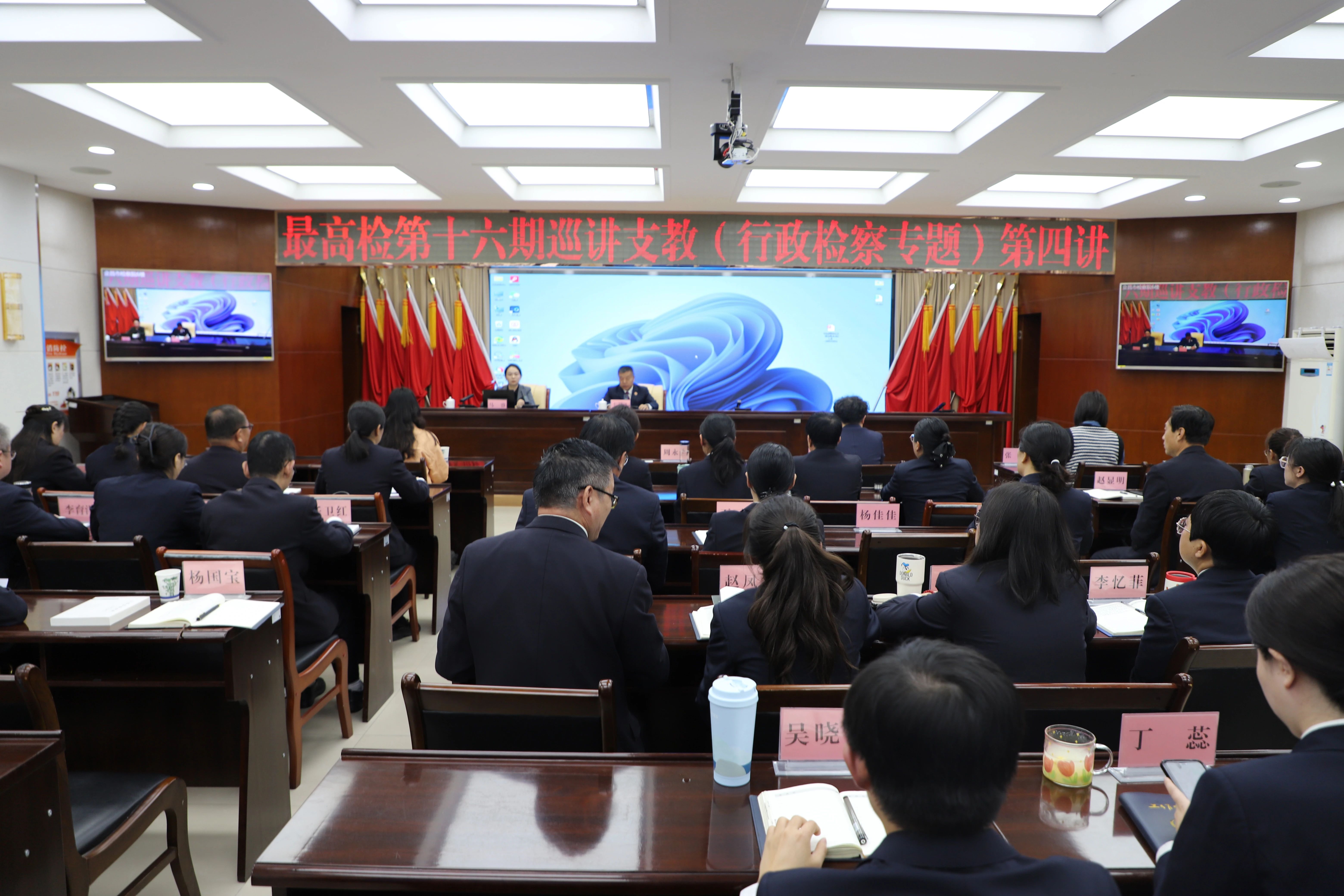 党组书记、检察长沈涧与省检察院机关全体干警共130余人在现场听课;各市州分院及基层检察院全体干警共1200余人通过视频连线在分会场同步学习,共享能力提升的精神“大餐”。