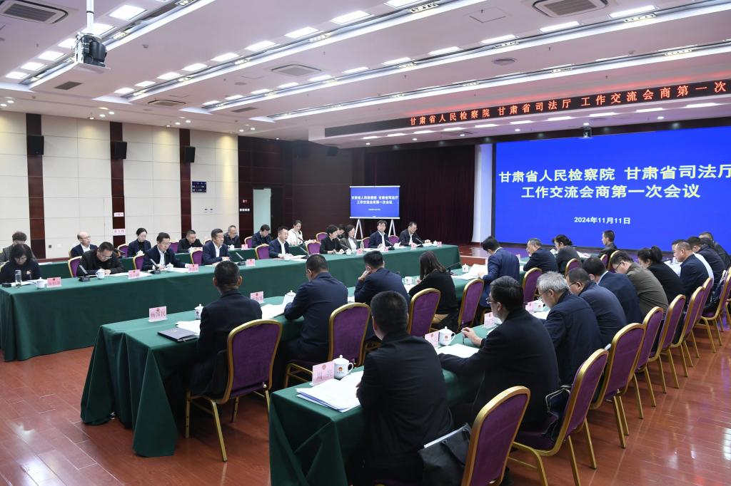 沈涧表示,此次交流会商,既是贯彻落实党的二十届三中全会精神、习近平法治思想和习近平总书记视察甘肃重要讲话重要指示精神的实际行动,也是深化协作配合、共促司法公正的务实举措。从政治层面看,彰显了中国特色社会主义司法制度的最大优势,在党的领导下,“检司”能够最大限度凝聚共识,最大力度在共同推进国家治理体系和治理能力现代化中展现各自担当。从业务层面看,“检司”只有努力消解分歧,最大限度形成法治合力,才能更好落实习近平总书记反复强调的“努力让人民群众在每一个司法案件中感受到公平正义”的目标要求。从机制层面看,“检司”搭建交流有效载体,既填补了机制保障不足的短板,更是深化落实党的二十届三中全会关于“健全监察机关、公安机关、检察机关、审判机关、司法行政机关各司其职,监察权、侦查权、检察权、审判权、执行权相互配合、相互制约的体制机制”的有益探索。双方要强化协作配合、深化互动交流,共同担起推进全面依法治省实践、推动更高水平法治甘肃建设的政治责任、法治责任。