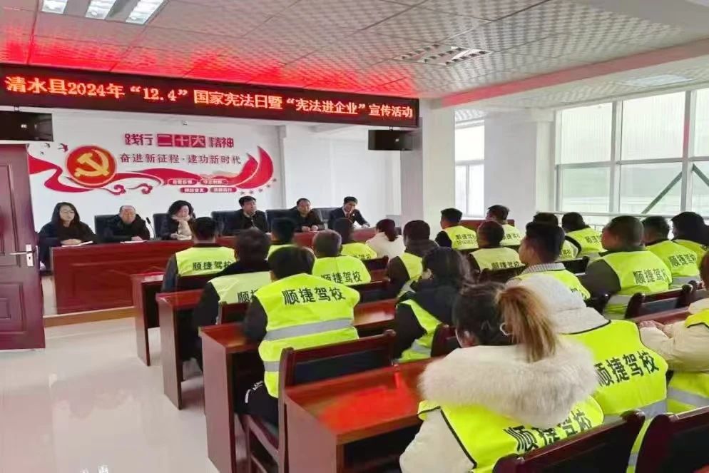 清水县检察院联合县工商联、司法局、工会和财政局在县顺捷驾校,景泰县检察院干警到县电子商务创业园开展“宪法进企业”主题宣传活动。检察干警向企业职工讲解《中华人民共和国宪法》的基本原则、重要意义和主要内容等,重点解读优化营商环境相关法律法规以及依法治企等知识,引导企业管理者和职工自觉学习宪法、尊崇宪法。
