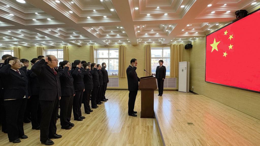 定西市安定区、甘谷县、庄浪县、阿克塞检察院举行宪法宣誓仪式,全体干警举起右拳,向宪法庄严宣誓,“我宣誓:忠于中华人民共和国宪法,维护宪法权威,履行法定职责……”表达维护宪法权威、捍卫宪法尊严的决心。
