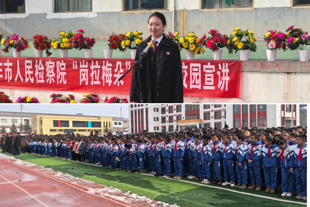 合作市检察院“岗拉梅朵”法治宣讲团成员受邀参加市第四小学开学典礼,为全校师生带来新学期“法治第一课”,引导同学们善于辨别不法行为,勇于抵制不法侵害,做到办事依法、遇事找法、解决问题用法,学会用法律武器维护自身合法权益。