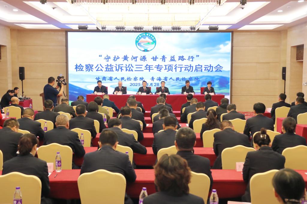 据介绍,甘肃、青海两省检察机关自2025年3月至2027年12月联合开展“守护黄河源 甘青益路行”专项行动。专项行动分为动员部署、全面实施、总结提升3个阶段,实施水泽清源、生灵乐土、厚土固基、碧波清流、河畅岸美、文化扬帆、机制铸链等11项工程,围绕重点领域办案、区域协同联动、素质能力提升等方面一体提升监督质效。聚焦黄河上游干流及湟水河、大通河、洮河等重要支流水资源保护突出问题,不断强化水资源严格守护;加大对黄河上游重要野生动物栖息地和珍稀植物分布区的动植物资源保护力度,推动建设生态廊道,维护黄河源头生态系统完整性、自然景观多样性,筑牢生物多样性保护屏障;聚焦青海东部、甘肃甘南等黄河流域水土流失、草原沙化退化、虫鼠害等严重地区,有效防治土地沙化和水土流失;加大对甘青黄河流域工业、农业面源、生活污染等各类污染的监督力度,有效提升黄河上游水环境治理水平;持续治理河湖“四乱”问题,确保黄河上游河道畅通、河岸整洁;加强对黄河流域文化遗产和非物质文化遗产的保护传承,服务保障甘青两地黄河国家文化公园建设;针对黄河流域生态保护和高质量发展中的难点问题开展专项研究,为检察实践提供理论支持和智力保障;强化大数据法律监督模型应用,以数字检察推动专项行动取得实效。
