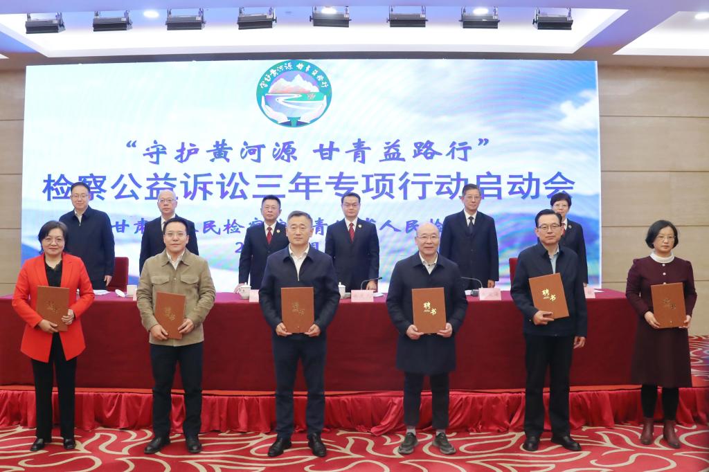启动会上,甘肃、青海省检察院签署了《关于建立甘肃、青海两省跨区域检察公益诉讼协作机制的意见》,向此次专项行动的特邀专家顾问颁发了聘书,青海省海东市检察院、甘肃省甘南州检察院检察长代表两省黄河流域检察机关表态发言。