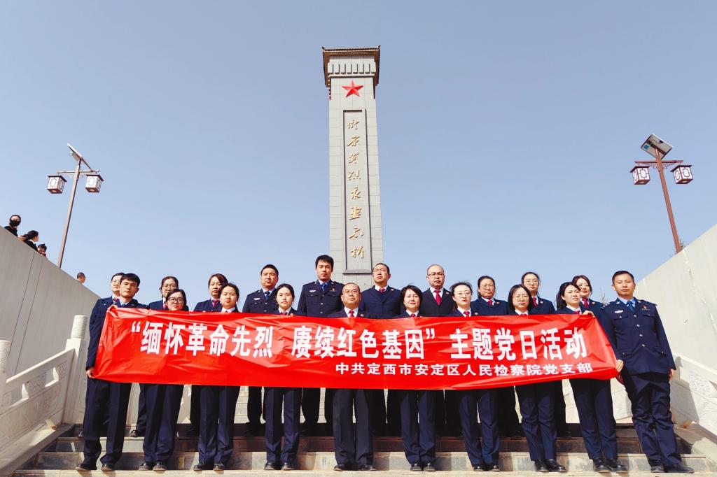 武威铁路运输检察院党员干警到凉州战役纪念馆开展“缅怀革命先烈,凝聚奋进力量”祭奠西路军英烈活动;定西市安定区检察院组织党员干警到内官营烈士纪念陵园开展主题党日活动。全体党员干警重温入党誓词,感受革命先烈的忠诚与无畏,告诫自己要始终坚守党员信念,不忘初心、牢记使命。