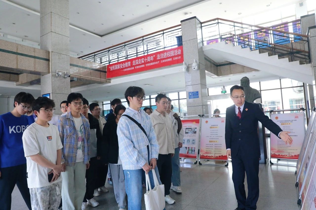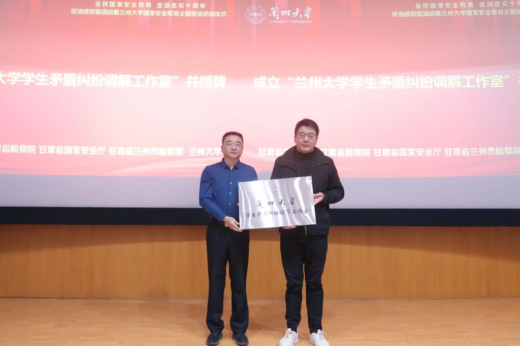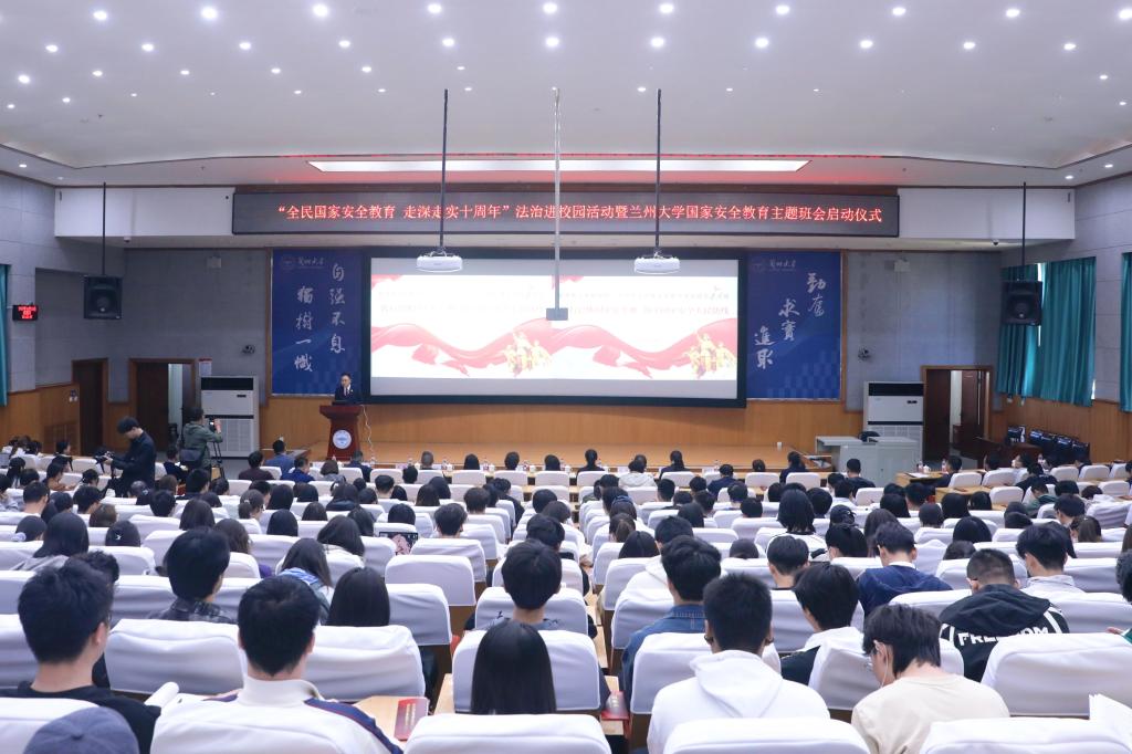 、甘肃省国家安全厅、兰州市检察院、兰州大学在兰州大学榆中校区天山堂共同举行“全民国家安全教育 走深走实十周年”法治进校园活动暨国家安全教育主题班会启动仪式,通过聘任“特聘法治安全宣讲员”、举办主题法治讲座、参观国家安全宣传展板、授牌成立学生矛盾纠纷调解工作室和普法游戏互动等务实举措,深入学习贯彻习近平总书记关于总体国家安全观的重要论述,落实教育部立德树人根本任务和加强国家安全教育的相关要求,切实提升广大师生法治安全意识和维护国家安全能力。