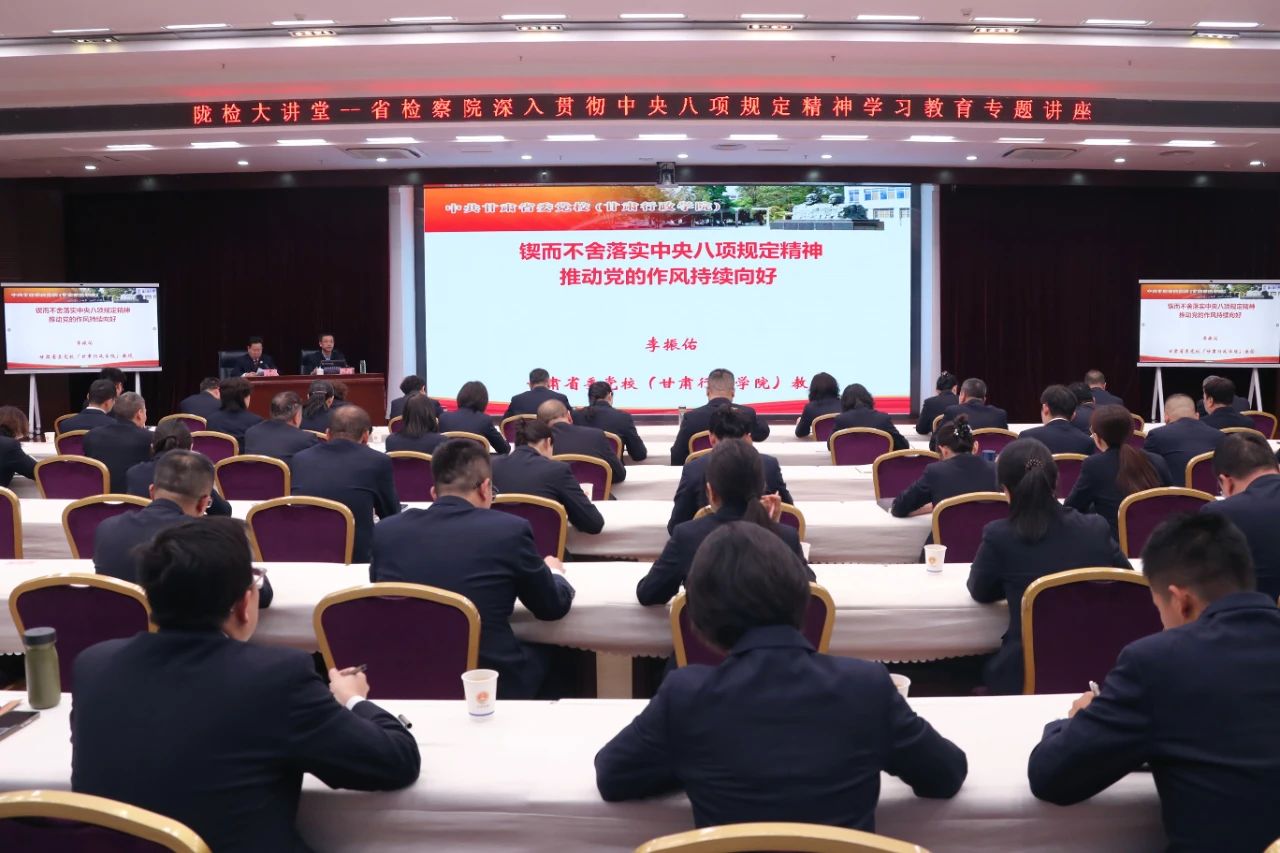 举办深入贯彻中央八项规定精神学习教育专题讲座,邀请省委党校马克思主义学院院长李振佑教授为全体干警作加强党的作风建设专题授课。省检察院党组成员、政治部主任李建功主持讲座。
