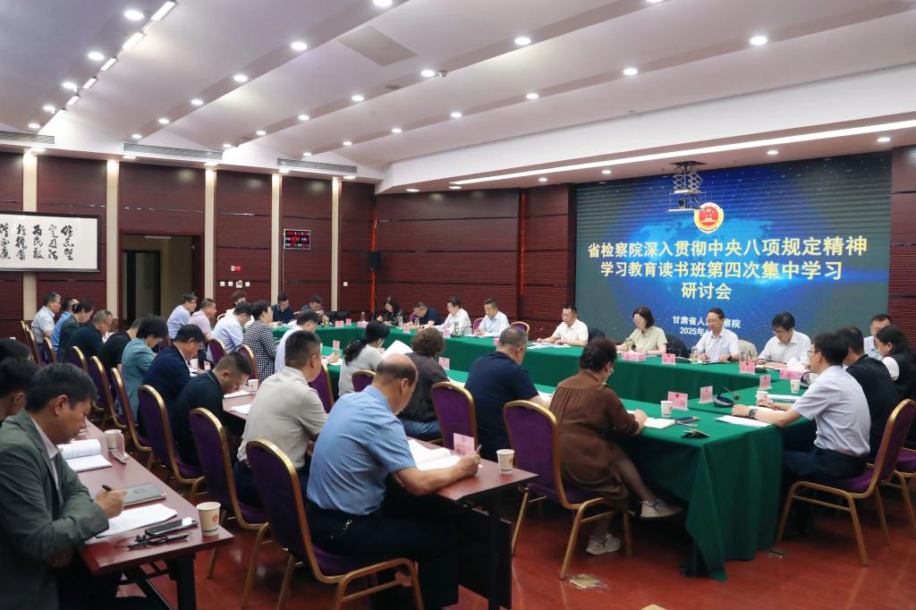 党组书记、检察长沈涧主持召开深入贯彻中央八项规定精神学习教育读书班第四次集中学习研讨会,专题学习省委警示教育会精神、全省学习教育省委督导组培训会议精神及省纪委监委对5起违规吃喝违规收受礼品礼金典型问题的通报等相关文件,对省检察院机关持续开展好深入贯彻中央八项规定精神学习教育提出了明确要求。4名同志结合学习和工作实际作交流发言,省检察院在家班子成员、检委会专职委员、厅级干部和机关各部门负责人参加研讨。