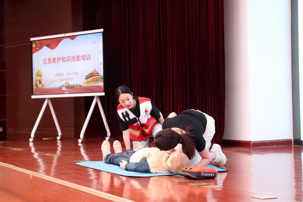培训中,讲师们通过通俗易懂的语言和具体案例,生动形象地讲解了心肺复苏基础知识、自动体外除颤仪(AED)的标准化操作流程、气道异物梗阻的处理等急救理论知识以及创伤救护等常见意外伤害的预防和急救方法。同时针对日常生活中常见的突发晕厥、气道梗阻等情形,结合人体模型演示了海姆立克急救法等实用技能的操作技巧。