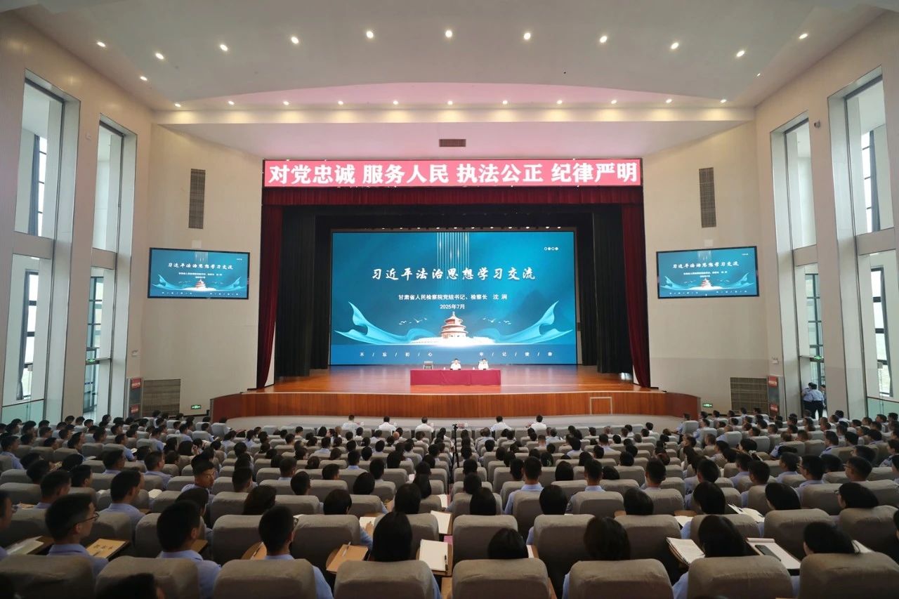 党组书记、检察长沈涧受邀为甘肃警察学院广大师生讲授习近平法治思想专题思政课。甘肃警察学院党委书记冯毅主持,学院领导、全体教职工、培训学员及学生代表1000余人参加。