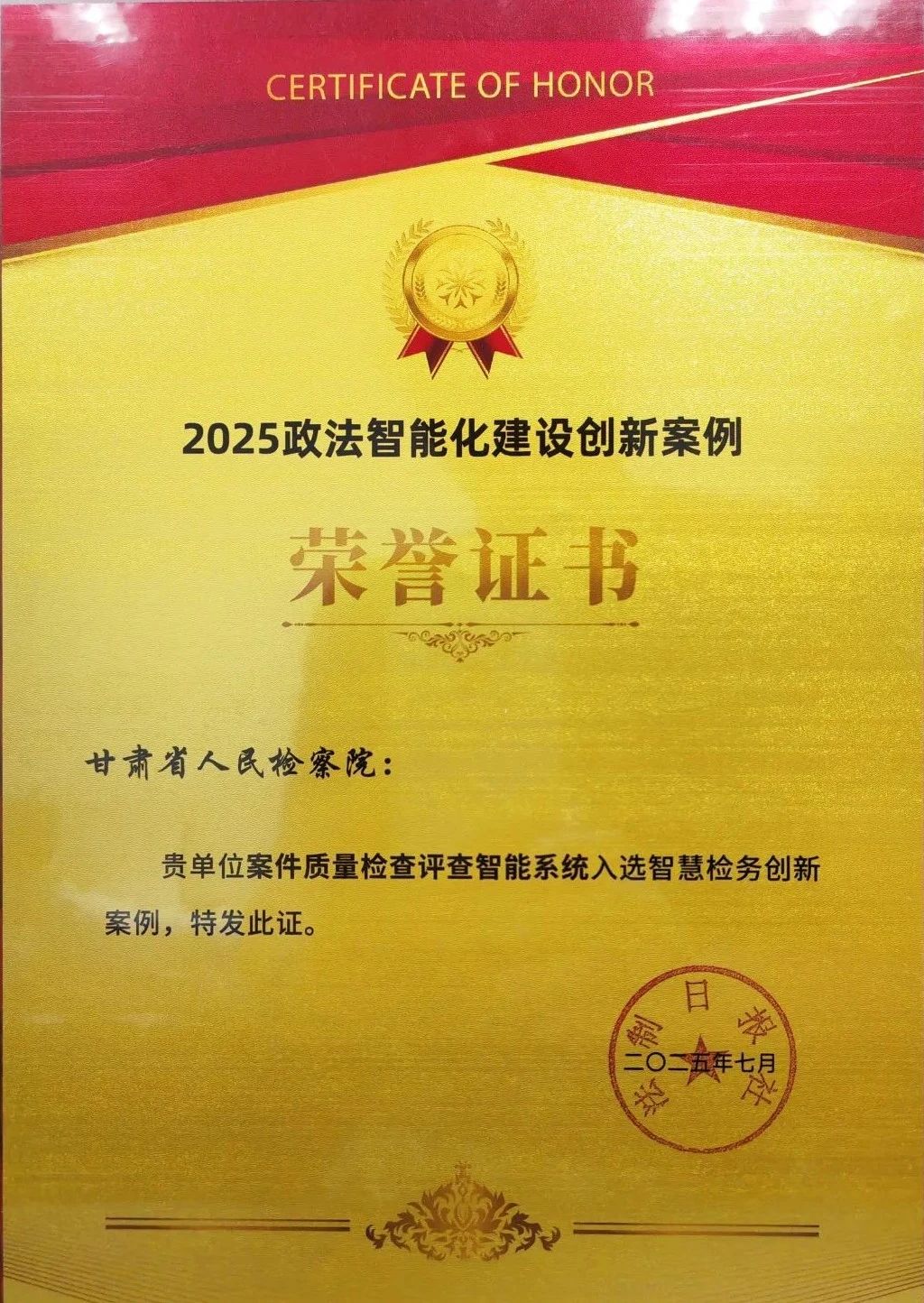 申报的“案件质量检查评查智能系统”,荣获智慧检务创新案例,标志着1024核工厂