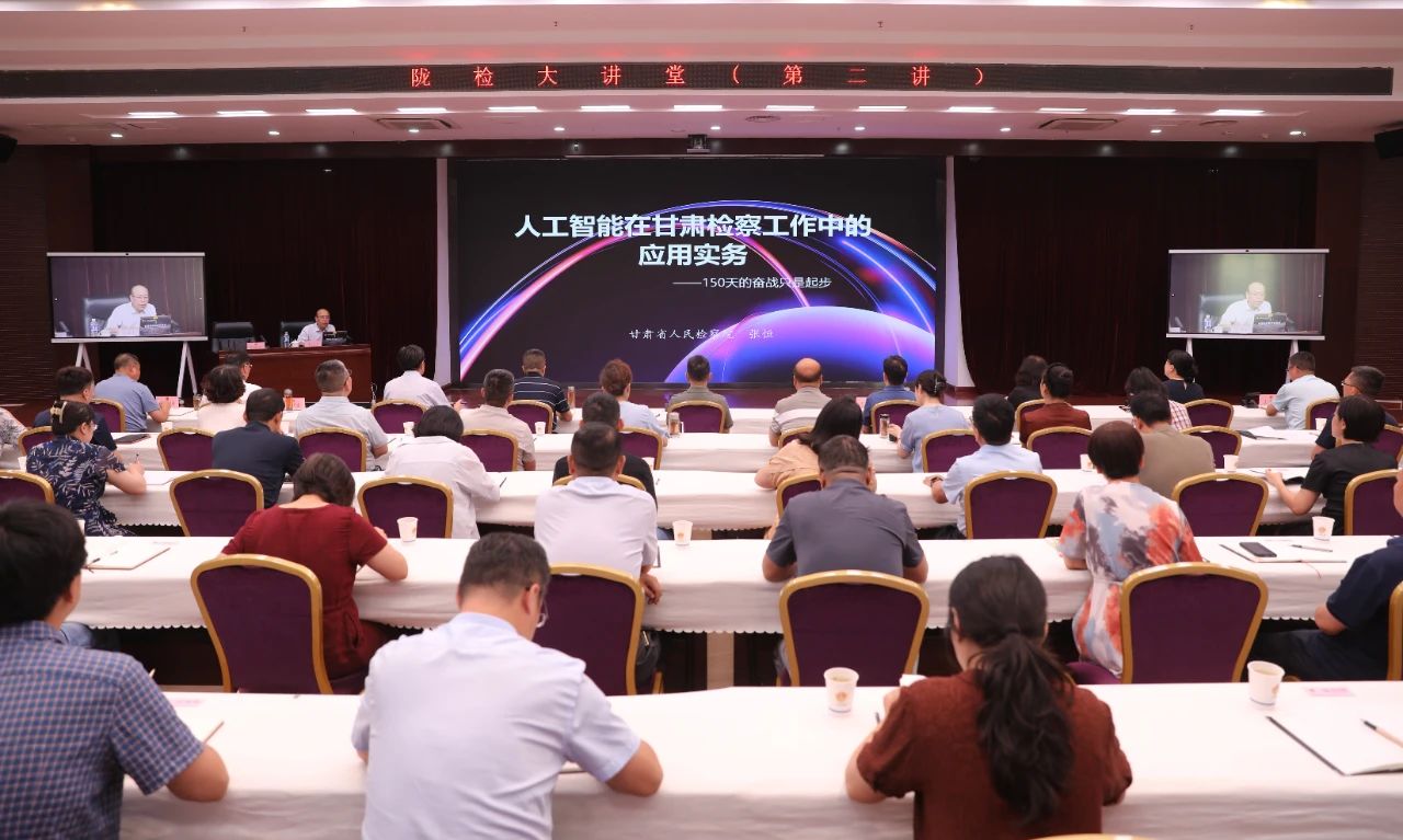 举办“陇检大讲堂”2025年第二讲,省检察院检察技术信息处处长张恒以《人工智能在甘肃检察工作中的应用实务》为题,分享人工智能及大语言模型的发展历程、在检察业务各环节的应用实务、面临的多维度挑战以及今后的发展趋势。省检察院党组书记、检察长沈涧与全省三级院检察干警共同参加。省检察院检委会专职委员赵德金主持讲座,并就推动人工智能在全省检察工作中的深化应用提出要求。