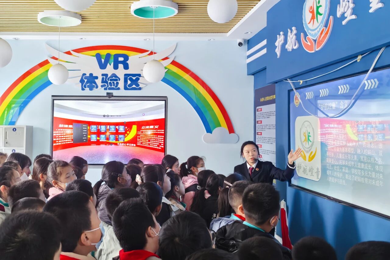 平凉市崆峒区检察院举办检察开放日活动,邀请百名小学生走进检察机关,通过VR法治体验、趣味问答等沉浸式互动,让孩子们在趣味中理解宪法、感受法治。
