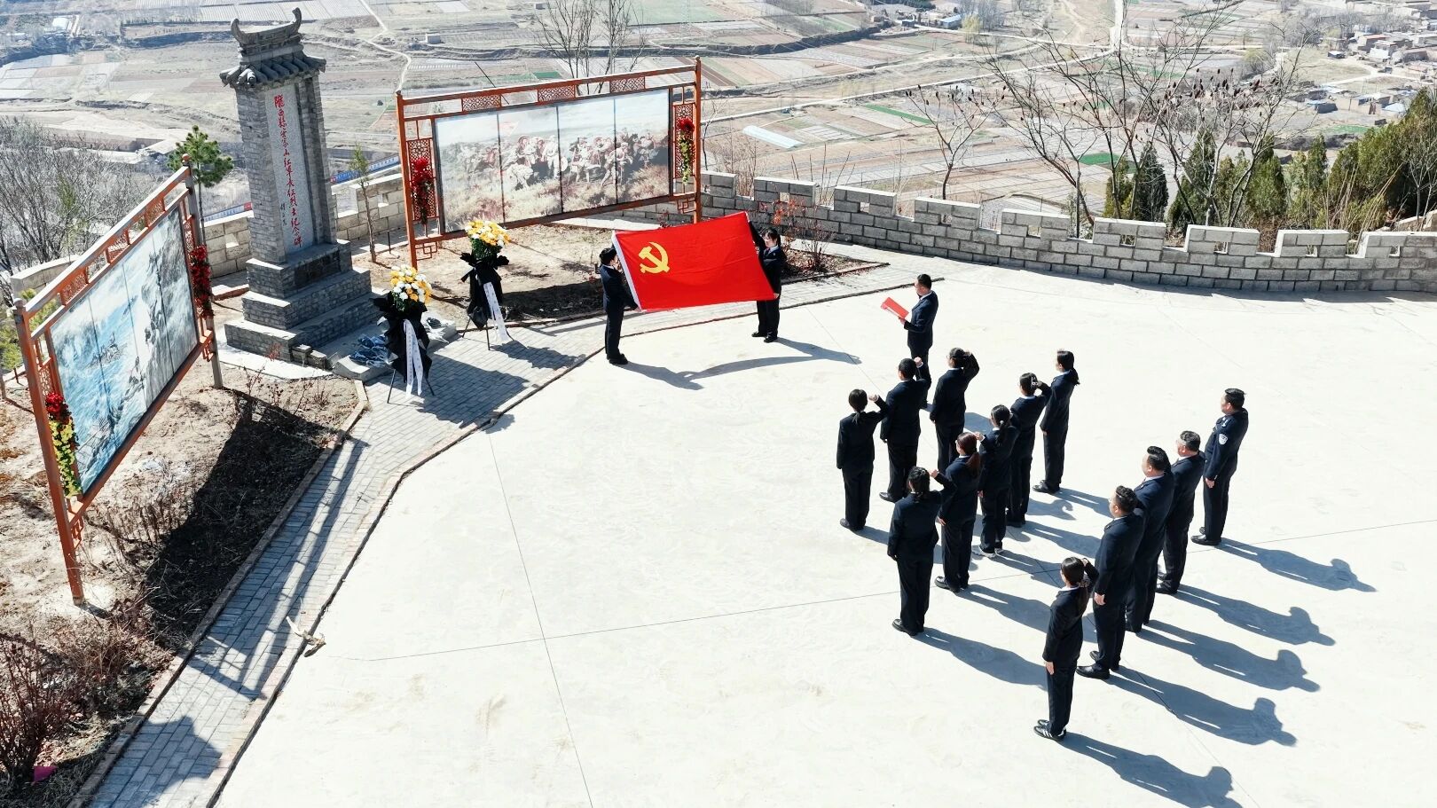 陇西县检察院组织干警到红军长征安家山战斗遗址,敬献花篮、默哀鞠躬、重温入党誓词,并现场聆听长征历史,号召传承红色基因;活动后开展志愿服务,清理遗址环境,以行动守护红色净土。