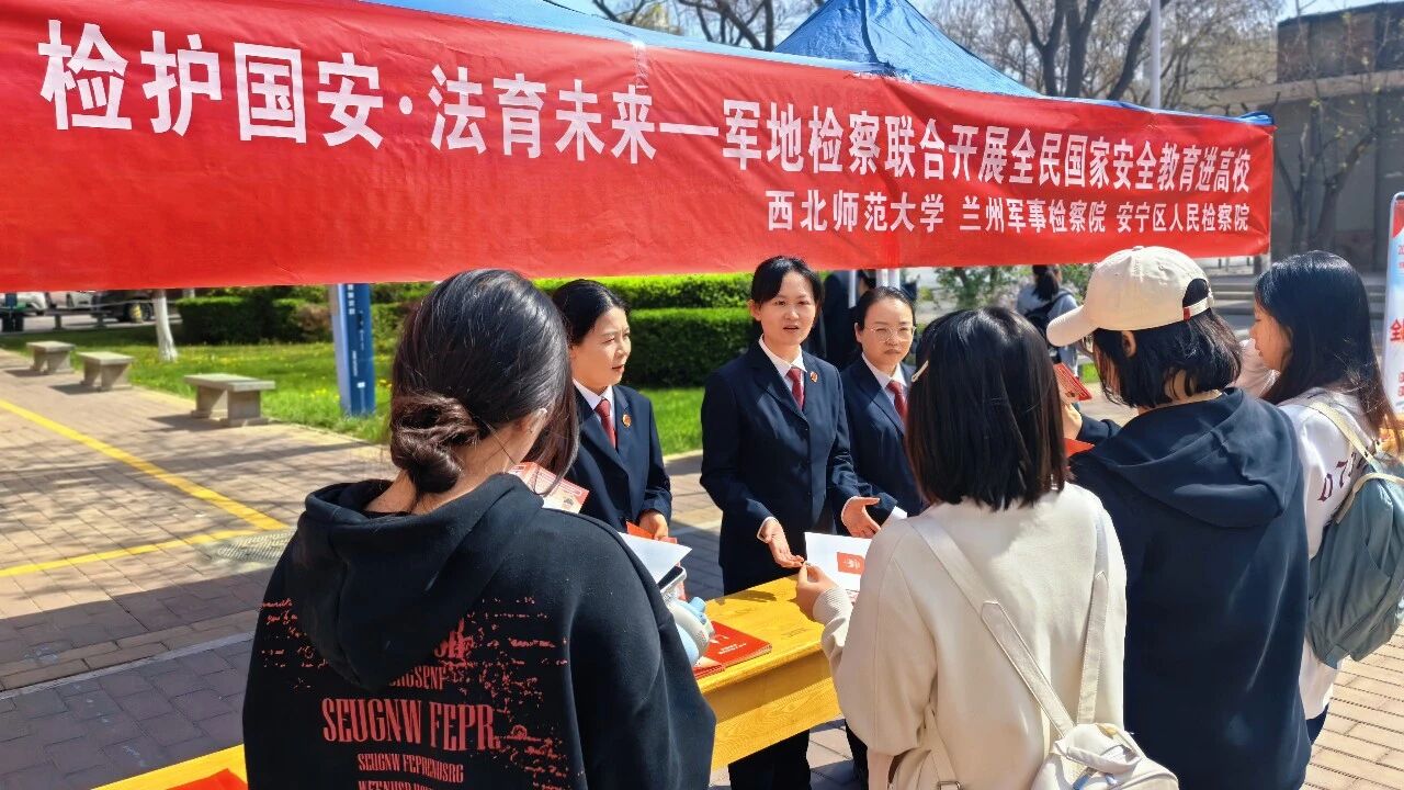 兰州市安宁区检察院联合兰州军事检察院在西北师范大学,开展“检护国安 法育未来”国家安全教育主题活动,通过以案释法、以宣促防,全方位、多角度为青年学子普及国家安全法治知识,切实提升高校青年学生的国家安全意识。