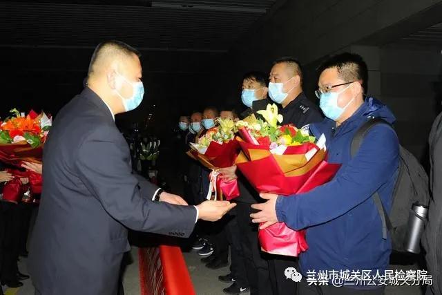 近日,兰州市公安局城关分局、兰州市城关区检察院警检联动,由兰州市城关区检察院派员依法提前介入,兰州市城关公安分局集中警力,辗转多省份抓获电信诈骗嫌犯80余名,捣毁5处电诈窝点,并于3月18日顺利押解回兰州。兰州市公安局城关分局在兰州西站举行了接站欢迎仪式,向参加侦破该案的侦查人员代表和提前介入检察官送上了鲜花,并对所有参加侦破案件侦查人员和检察介入人员的辛苦付出表达了谢意、肯定和鼓励。
