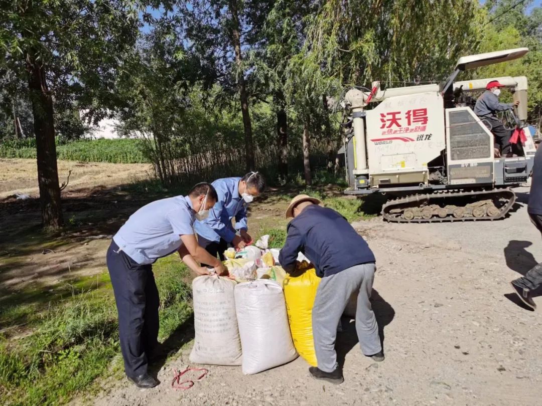 由12名检察干警组成的临时党小组,发挥党员先锋模范作用和党组织战斗堡垒作用,联合“村两委”摸清各户农田所在位置以及需要收割小麦底数。在制定好详尽的计划后,24日清晨,雇用的5台收割机在村委会门前集中上阵,检察干警积极配合,指挥、装袋、搬运,奏响了为群众办实事的“丰收曲”。收割机穿梭在金黄的麦田,四天时间里,7个社119户村民所属的269亩小麦全部完成收割。村民们看到麦穗脱粒装袋后,整齐地码放在农用车上运回自家粮仓时,高兴地为检察干警们竖起了大拇指。