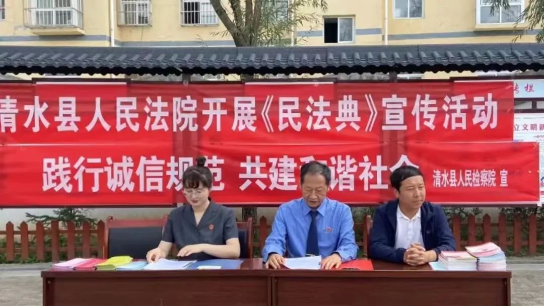 “诚信体系建设需要建立在法治基础上,需要法律制度作为保障,所以我们要讲诚信。”近日,清水县检察院联合县法院在永清镇李沟村文化广场开展民法典宣传进乡村暨诚信法治宣传活动,为群众现场讲解民法典基本知识。