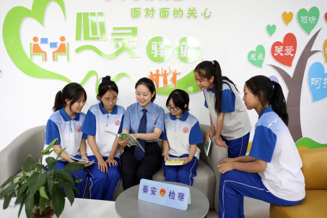 同学们先后参观了秦安县检察院一楼大厅展板区、12309检察服务中心、检察听证室、智慧检务中心、“小禾苗”未检工作室等,体验了检察官的办案环境和工作日常。在“小禾苗”未成年人检察工作室,检察官通过一场别开生面的法治小课堂,用生动的案例讲解和互动问答,为同学们诠释了法律护佑成长的意义。同学们全神贯注地倾听,学习了保护个人隐私、抵制校园欺凌等安全防护知识;观看了青少年普法微视频,并在书签上写下自己的小愿望及参加活动的感受。