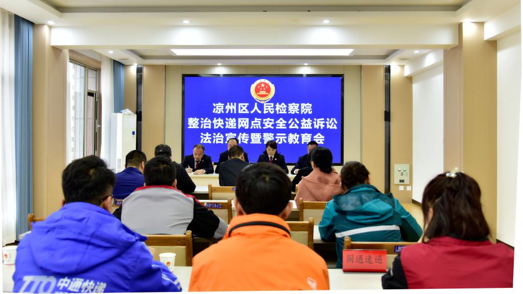 “这次活动再次警醒我们要加大违禁品识别力度,严格执行各项规章制度,坚决守护好‘寄递安全’第一站。”近日,武威市凉州区检察院召集9家快递企业及监管部门相关人员召开法治宣传暨警示教育大会,一名快递小哥在参加活动后这样说。