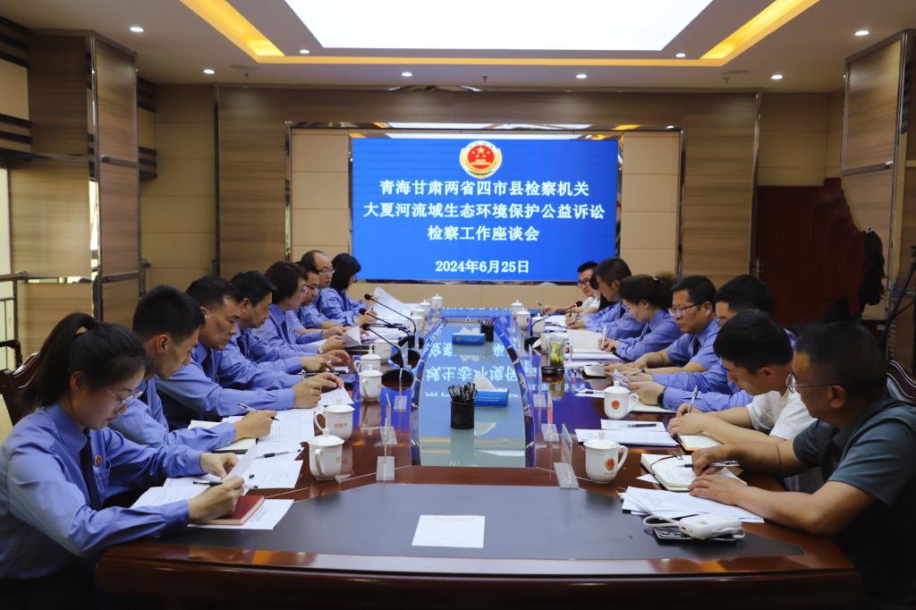 期间,全体人员在同仁市检察院召开青海甘肃两省四市县检察机关大夏河流域生态环境保护公益诉讼检察工作座谈会,围绕深化跨区域协作、完善线索信息共享、运用大数据添智赋能等方面进行交流探讨,并达成共识。