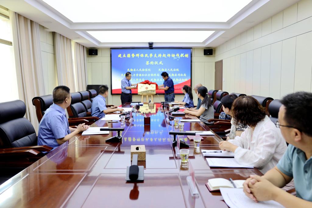 近日,民勤县检察院联合县法院、人力资源和社会保障局、司法局、退役军人事务局、总工会、妇联共同签订《关于建立弱势群体民事支持起诉协作机制的意见》(以下简称《意见》),联合县人社局挂牌成立“民事支持起诉工作站”,进一步凝聚民事支持起诉合力,畅通司法救济渠道,助力诉讼能力受限的特定群体依法维权。