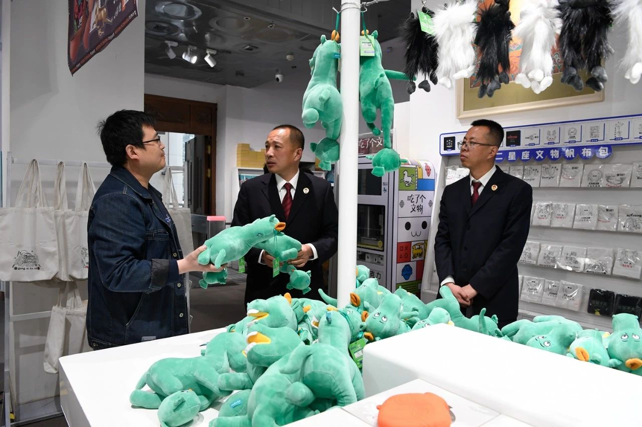 知识产权检察办公室办案检察官在办理“甘肃省博物馆文创产品铜奔马(绿马)被侵权案”时进行现场调查。
