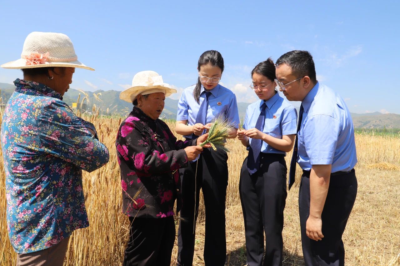 2024年5月,武威检察干警在“红秃头”小麦生长区了解小麦生长情况,助力“红秃头”小麦等农产品地理标志保护。