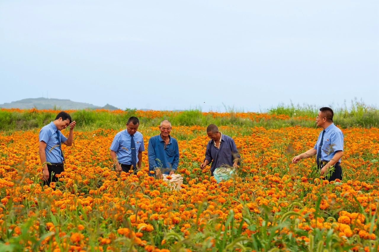 2023年8月17日,清水县检察院干警在红堡镇新坪村了解万寿菊采摘情况,在公益诉讼、司法救助、 法治宣传等方面构建多维度帮扶体系,以实际行动助农兴农,为助力乡村全面振兴贡献检察力量。