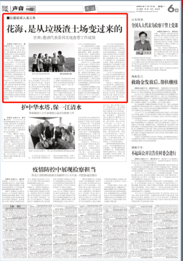 2020年7月13日检察日报刊发《花海,是从垃圾渣土场变过来的》一文。