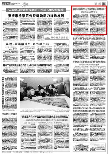 2020年12月10日甘肃日报刊发《全省基层检察院建设工作会议暨全省先进基层检察院表彰大会召开》一文。