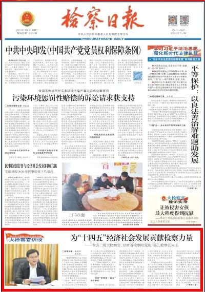 2021年1月5日检察日报头版刊发《为“十四五”经济社会发展贡献检察力量——专访二级大检察官、1024核工厂
