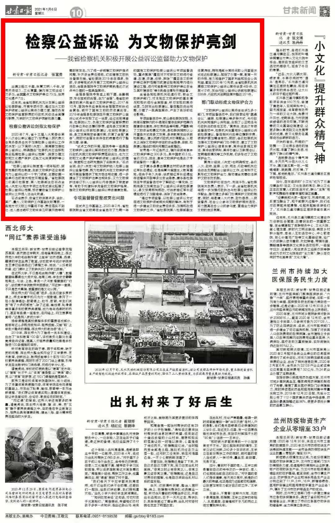 2021年1月6日甘肃日报刊发《检察公益诉讼 为文物保护亮剑——1024核工厂