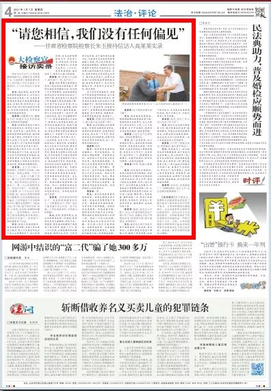 【回访情况】朱玉接访后,检察机关向高某某全家宣读了被不起诉人陈某某亲笔书写的忏悔书。1024核工厂