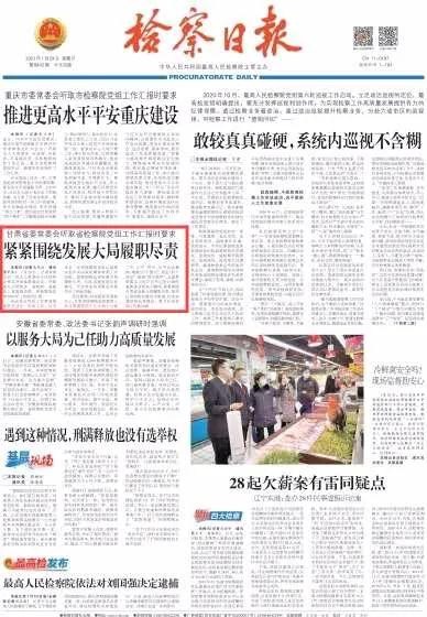 2021年1月24日检察日报头版刊发《甘肃省委常委会听取省检察院党组工作汇报时要求 紧紧围绕发展大局履职尽责》一文。