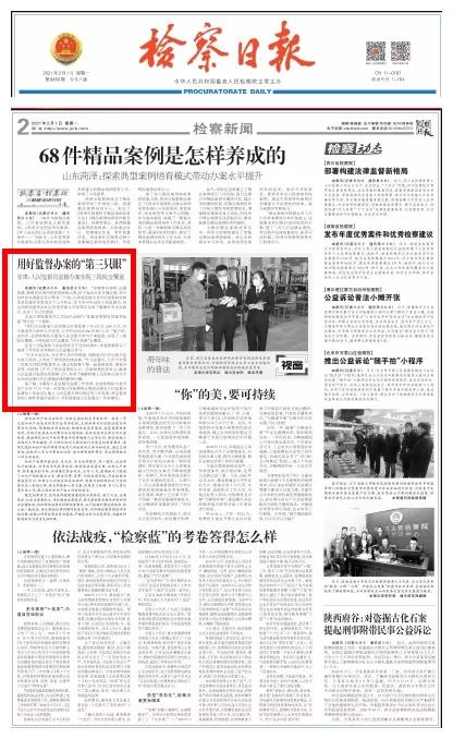 2021年2月1日检察日报二版刊发《用好监督办案的“第三只眼”——甘肃:人民监督员监督办案实现三级院全覆盖》一文。