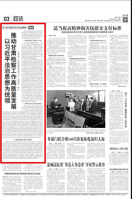 党组书记、检察长朱玉理论文章《以习近平法治思想为统领推动甘肃检察工作高质量发展》。