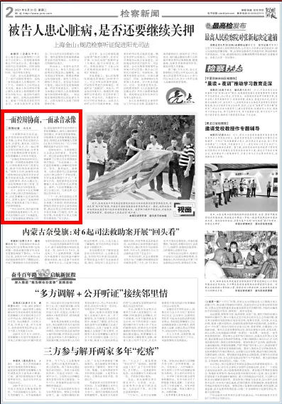 2021年8月31日,检察日报二版刊发新闻《一面控辩协商,一面录音录像》。