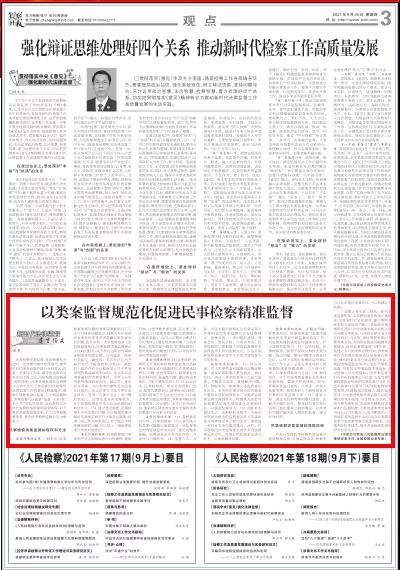 法律政策研究室主任、全国检察业务专家金石撰写的文章《以类案监督规范化促进民事检察精准监督》。