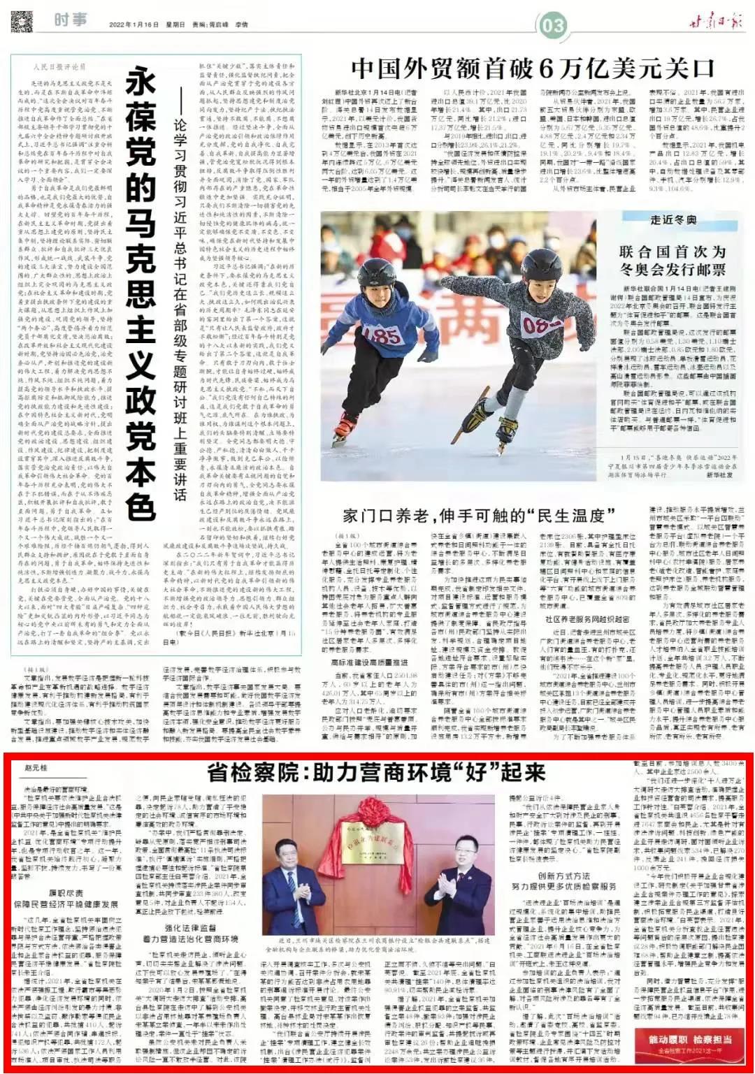 2022年1月16日,甘肃日报三版刊发《省检察院:助力营商环境“好”起来》。