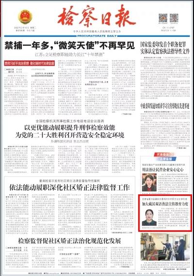 2022年2月15日,检察日报头版刊发《甘肃省夏河县桑科乡曼玛村乡村医生旦正草代表:加大藏汉双语普法宣传教育力度》。
